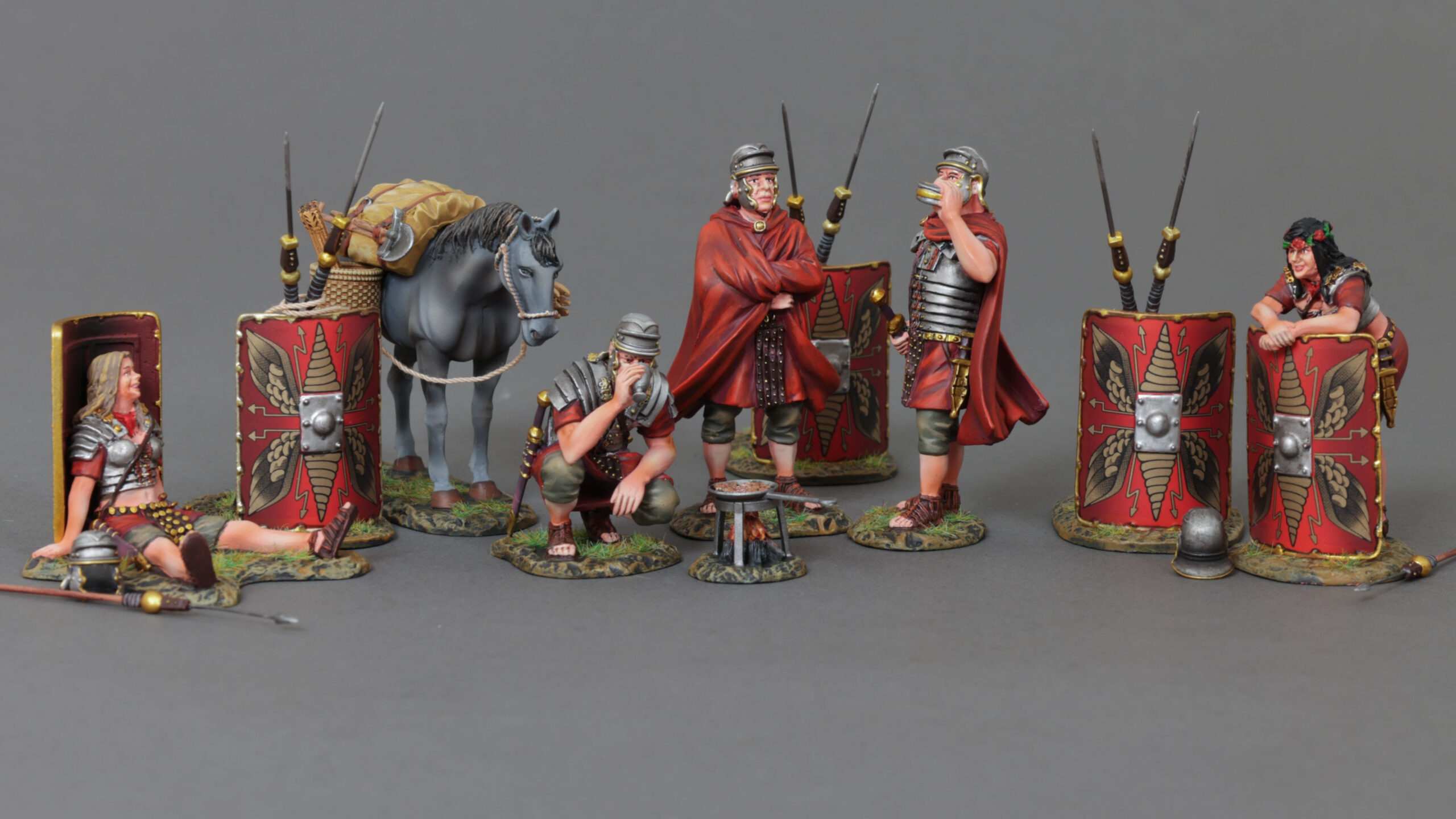 If it was not fighting the barbarian horde, the Legion, as with military service, saw much of the time spent on day-to-day duties, and we are now representing this through some ‘Camp’ focused figures, with legionnaires going through their everyday lives and duties. There will be further figures, both human and animal, to follow in 2026 to add to the scene of everyday Roman Legion life.