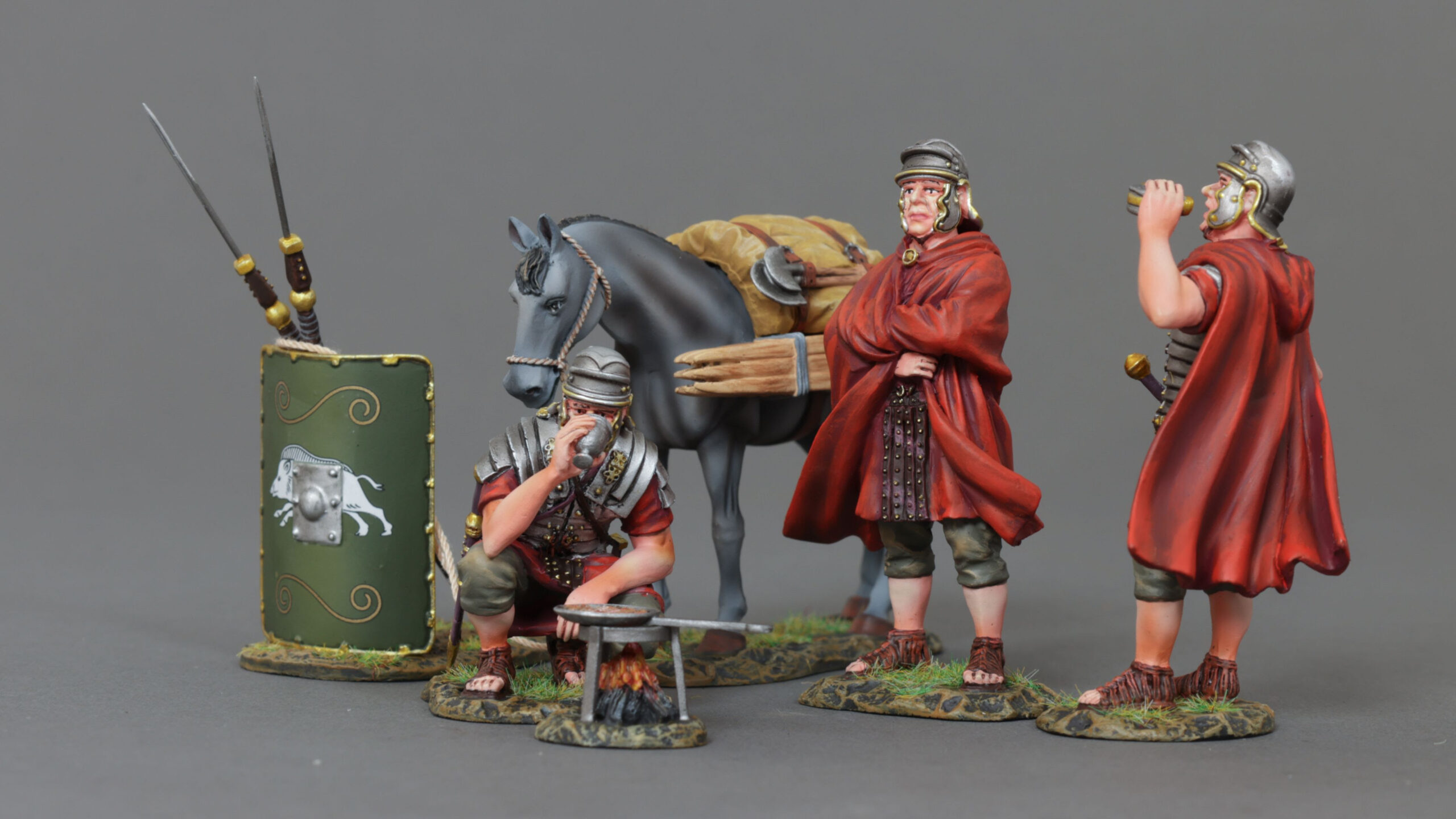 If it was not fighting the barbarian horde, the Legion, as with military service, saw much of the time spent on day-to-day duties, and we are now representing this through some ‘Camp’ focused figures, with legionnaires going through their everyday lives and duties. There will be further figures, both human and animal, to follow in 2026 to add to the scene of everyday Roman Legion life.