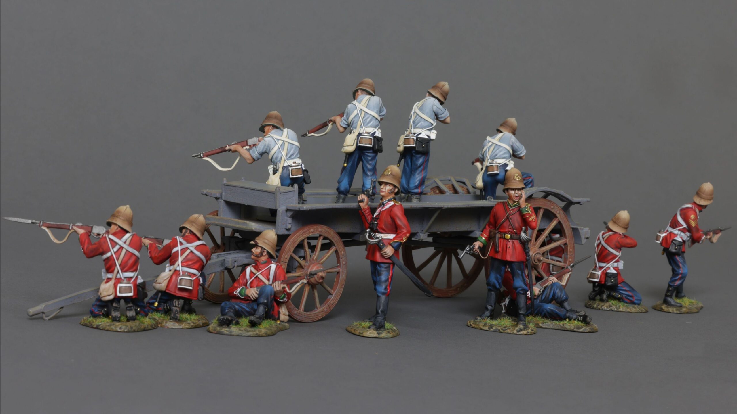 A return to the Zulu war with a vengeance with over 15 new figures planned for this year! A long time ago in a far off universe we made some Redcoats firing downwards from a British wagon made by Britain’s, these were very popular and sold out very quickly. Since then JJD have added their excellent looking wagons to the mix, we now decided that it was time for a makeover and have remade these figures. This time with improved painting and in shirt sleeve order, which means they can be from just about any Regiment or branch of service that fought in the campaign.